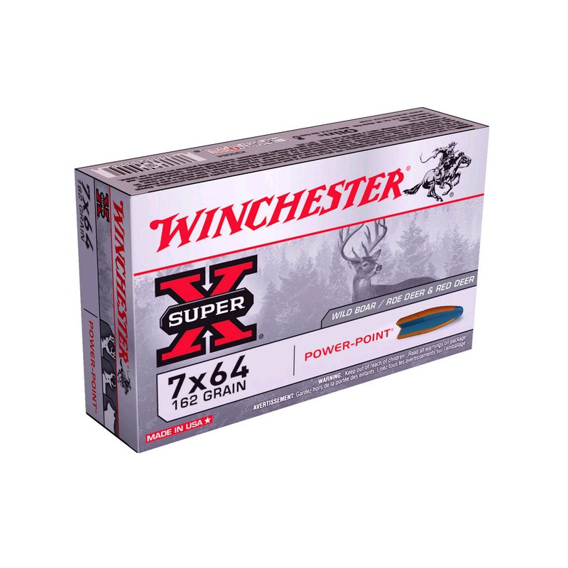 Boite de 20 cartouches WINCHESTER en calibre 7x64 montées avec des ogives POWER point de 162gr.